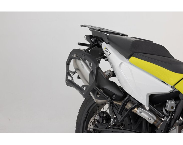 SW-MOTECH makes this silver aluminum case system suitable for the Husqvarna Norden 901, featuring extremely durable, bike-specific PRO side carriers.