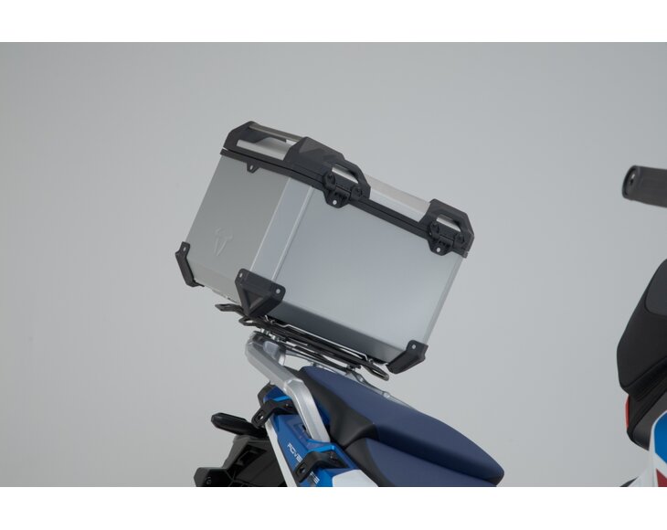 This complete solution contains everything required for installing a top case: TRAX ADV top case, bike-specific rack, adapter plate and TRAX lock set. And the next tour can start...because in the development of the TRAX ADV, stability and impermeability towards dust and water were just as important as easy handling. Whether on a off-road adventure, wanderlust tour or a short haul, the aluminum top case with a thickness of 1.5 millimeters proves itself in every challenge. The bike-specific rack and the adapter plate secure the top case: it is simply suspended and locked with the help of the lockable latch.