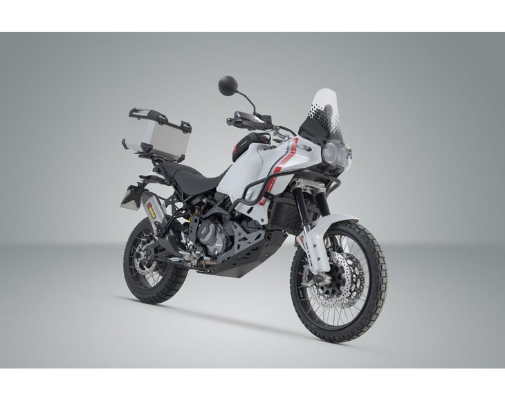 The TRAX ADV top case system consists of a rugged silver top case and the matching ADVENTURE-RACK for the Ducati DesertX.