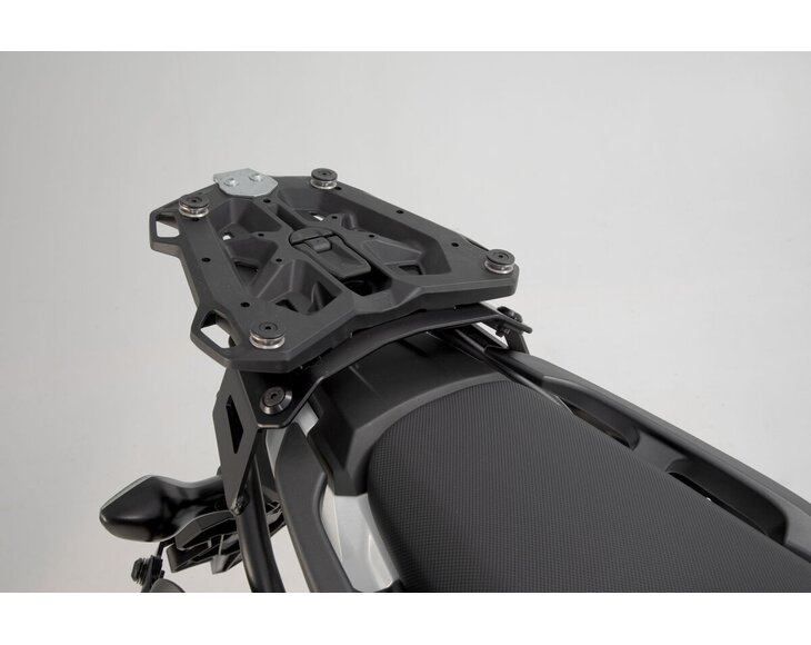 This complete solution contains everything required for installing a top case: TRAX ADV top case, bike-specific rack, adapter plate and TRAX lock set. And the next tour can start...because in the development of the TRAX ADV, stability and impermeability towards dust and water were just as important as easy handling. Whether on a off-road adventure, wanderlust tour or a short haul, the aluminum top case with a thickness of 1.5 millimeters proves itself in every challenge. The bike-specific rack and the adapter plate secure the top case: it is simply suspended and locked with the help of the lockable latch.