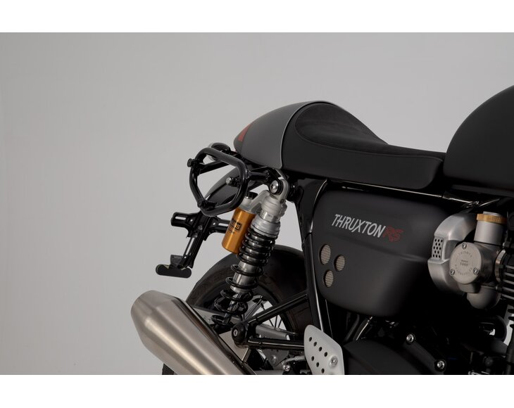 With this combination of SLC side carriers and URBAN ABS side cases, SW-MOTECH has equipped the Triumph Thruxton TFC for longer trips with more luggage.