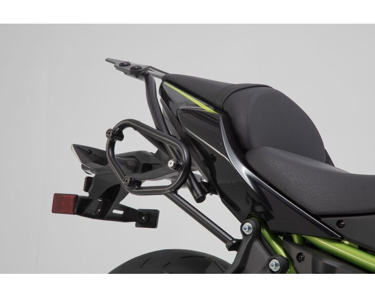 SW-MOTECH offers this combination of SLC side carriers and URBAN ABS side cases to get your Kawasaki Z650 and Ninja 650 ready for longer trips with more luggage.