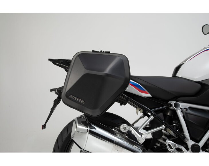 Hard shell, aerodynamic shape: Thanks to the light yet robust URBAN ABS cases, you can quickly turn a street bike into a touring motorcycle. The URBAN ABS cases can be attached securely to the SLC side carrier via the quick-release fastener featuring integrated anti-theft protection in one swift move. These compact cases made of ABS plastic combine low weight with extra load-bearing capacity, underline the bike's dynamic design and only have a minimal impact on the driving characteristics.