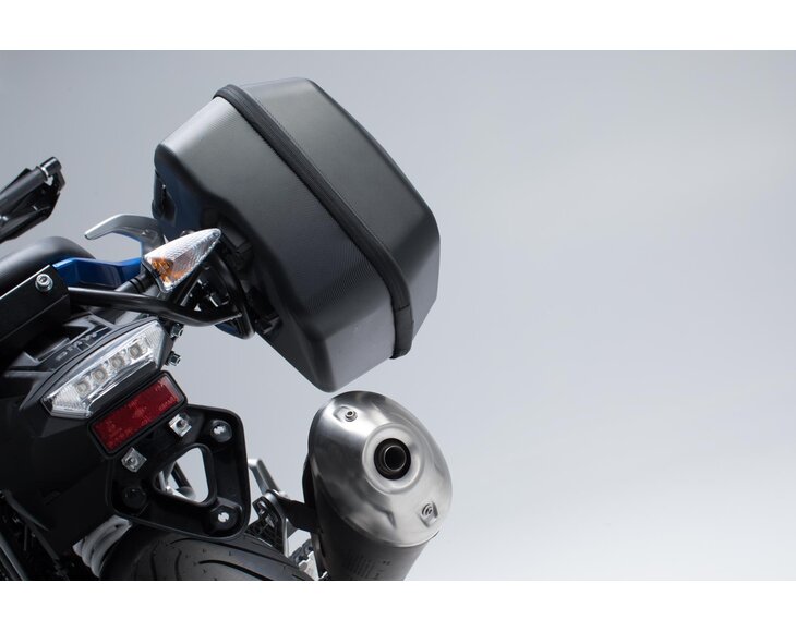 Hard shell, aerodynamic shape: Thanks to the light yet robust URBAN ABS cases, you can quickly turn a street bike into a touring motorcycle. The URBAN ABS cases can be attached securely to the SLC side carrier via the quick-release fastener featuring integrated anti-theft protection in one swift move. These compact cases made of ABS plastic combine low weight with extra load-bearing capacity, underline the bike's dynamic design and only have a minimal impact on the driving characteristics.