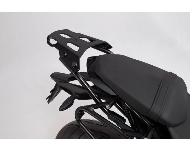 The perfect combination of top case and rack: The aerodynamic URBAN ABS top case and the sleek STREET-RACK offer a sporty solution for your luggage that is fit for everyday life at the same time.The sleek STREET-RACK, included in the set, was specifically developed for sporty motorcycles, naked bikes and smaller street bikes. SW-MOTECH finishes the STREET-RACK with powder coated aluminum and offers the right models for numerous bikes. You simply mount the rack on your bike's original attachment points.