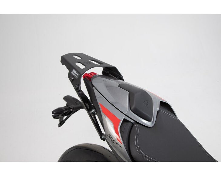 The perfect combination of top case and rack: The aerodynamic URBAN ABS top case and the sleek STREET-RACK offer a sporty solution for your luggage that is fit for everyday life at the same time.The sleek STREET-RACK, included in the set, was specifically developed for sporty motorcycles, naked bikes and smaller street bikes. SW-MOTECH finishes the STREET-RACK with powder coated aluminum and offers the right models for numerous bikes. You simply mount the rack on your bike's original attachment points.