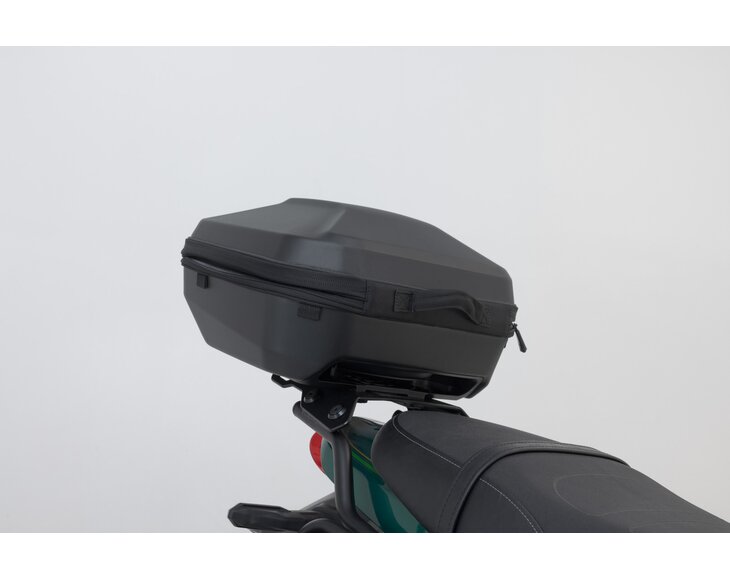The perfect combination of top case and rack: The aerodynamic URBAN ABS top case and the sleek STREET-RACK offer a sporty solution for your luggage that is fit for everyday life at the same time.The sleek STREET-RACK, included in the set, was specifically developed for sporty motorcycles, naked bikes and smaller street bikes. SW-MOTECH finishes the STREET-RACK with powder coated aluminum and offers the right models for numerous bikes. You simply mount the rack on your bike's original attachment points.