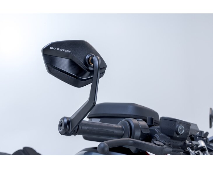 Make your BMW motorcycle stand out with the handlebar end mirrors from SW-MOTECH. The mirrors are made from forged, milled and black anodized aluminum and feature engraved logo details. Thus, they add a robust yet elegant touch to your handlebars.
